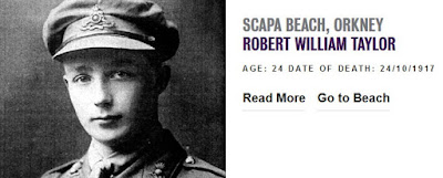 My connection here is with a distant cousin-by-marriage, Patrick Joseph Daly, who went down with the HMS Tipperary in the Battle of Jutland in 1916. The fleet set out from its Scapa Flow base in Orkney. Robert Taylor was born in Orkney. There is another non-family connection with Robert who fought at Paschendale and was killed at Poelcapelle near Ypres, not far from where Hedd Wyn had fallen earlier that year (1917). However the connection I have in mind arises from him being buried in nearby Poperinge which has strong connections with Dún Laoghaire, as I have myself.