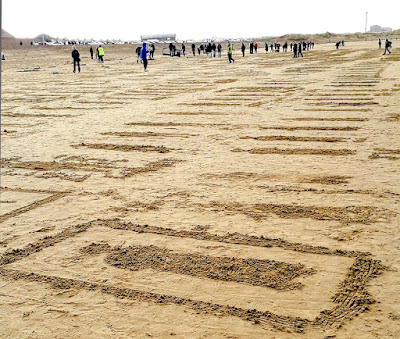 At a more personal level, there are stencils which people can use to draw generic outlines in the sand and dedicate them to family members killed in the war or whom so ever. These are then also claimed by the sea.